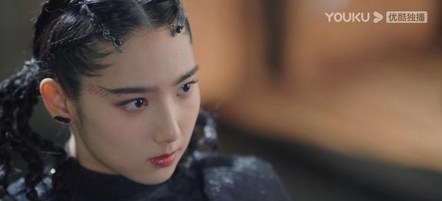 古裝劇中龍須劉海是用來(lái)修飾臉型的,上一次的龍須劉海造型顯得熱巴額頭又寬又方,這一次熱巴將頭發(fā)半扎起,再配上頭飾,明顯好看了很多。