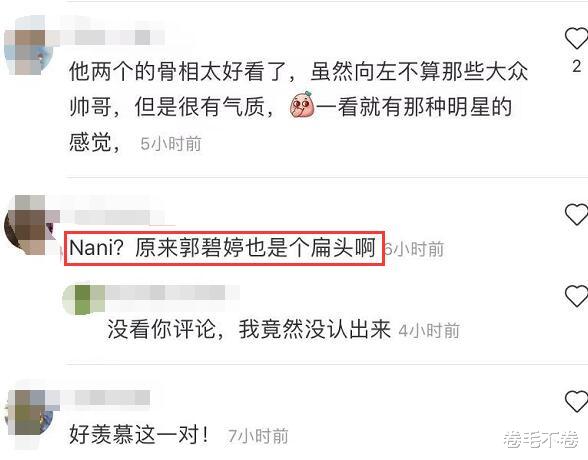 值得一提的是,近照中的郭碧婷看起來長胖了不少,臉蛋肉嘟嘟的沒有了以前的線條感,而且,扎起長發的她,貼頭發型將真實頭型曝光,十分搶鏡。網友看后留言表示:”原來郭碧婷也是個扁頭啊”。