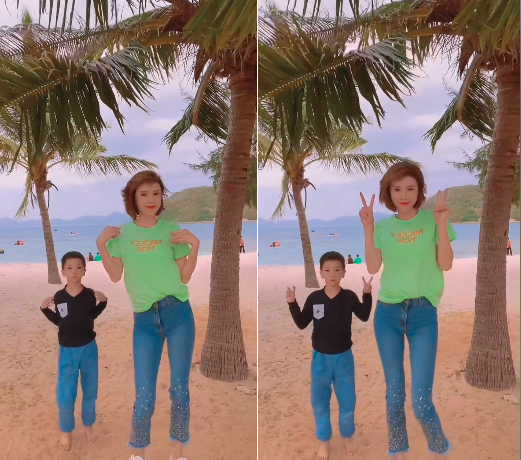 金巧巧很喜歡在社交平臺更新自己跳舞的視頻。此前,她也曬出一段自己帶著兒子在海邊跳舞的視頻,畫面中的金巧巧穿著綠色上衣和緊身牛仔褲,腿型極好。擺出小兔子耳朵的造型,可愛又性感。