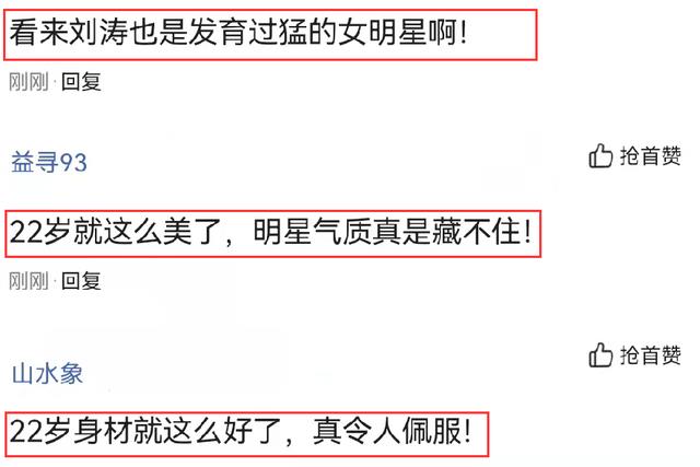這一組劉濤22歲時拍戲的舊照火了以后,很快就引起了網友們的關注和熱議,從網友們在評論區留言的內容來看,不僅有網友認為劉濤的身材很好,而且還有網友認為劉濤的明星氣質藏不住,不過,也有網友吐槽了劉濤的身材,并表示“看來劉濤也是一位身材發育過猛的女明星啊”。