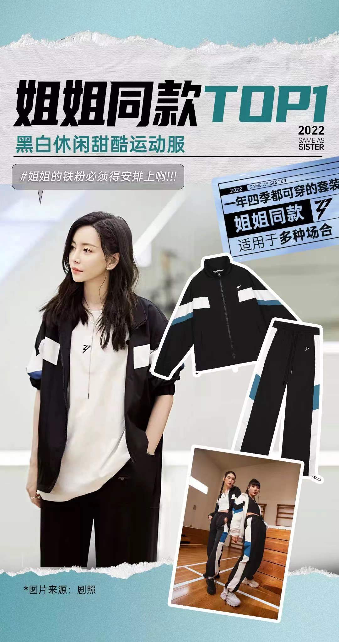 姐姐們同款訓練服,材料成分百分之90為優質棉,設計簡約大方,舒適透氣,幫助姐姐在訓練中即使大汗淋漓也不會不舒服。無論長袖外套還是黑白兩色的T恤,每一個“姐姐同款”都融入了吾雙獨特的品牌概念“無限真我,不止一個”。