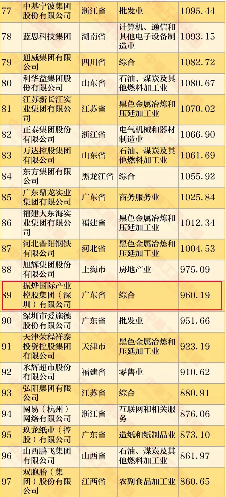 9月6日—7日,中國企業聯合會、中國企業家協會和全國工商聯分別發布了“2022中國企業500強”和“2022中國民營企業500強”榜單。振燁國際集團連續三年榮膺中國企業500強和中國民營企業500強,位列2022中國企業500強第250位、中國服務業企業500強第92位、中國民營企業500強第89位,彰顯了振燁國際集團穩健的發展勢頭和強勁的發展韌性。
