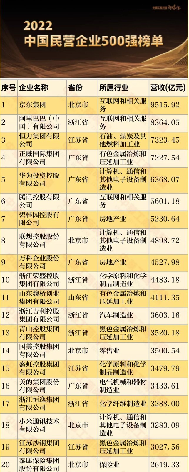 “中國民企500強”是全國工商聯為了解和掌握大中型民營企業的經營發展情況,對上規模民營企業進行的一項專業調研。自1999年以來,今年是全國工商聯第24次對上規模民營企業連續開展年度調研。根據調研報告顯示,中國民營企業500強的入圍門檻達到264億元,比上年增加28.66億元。