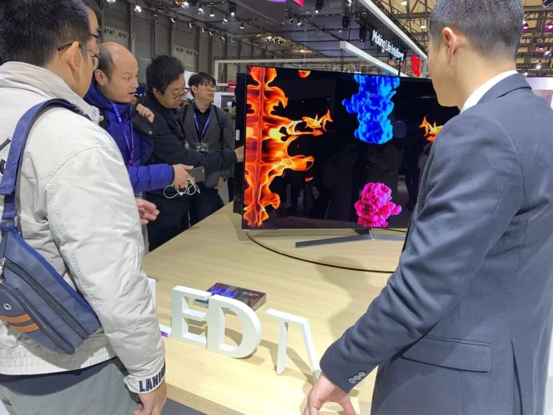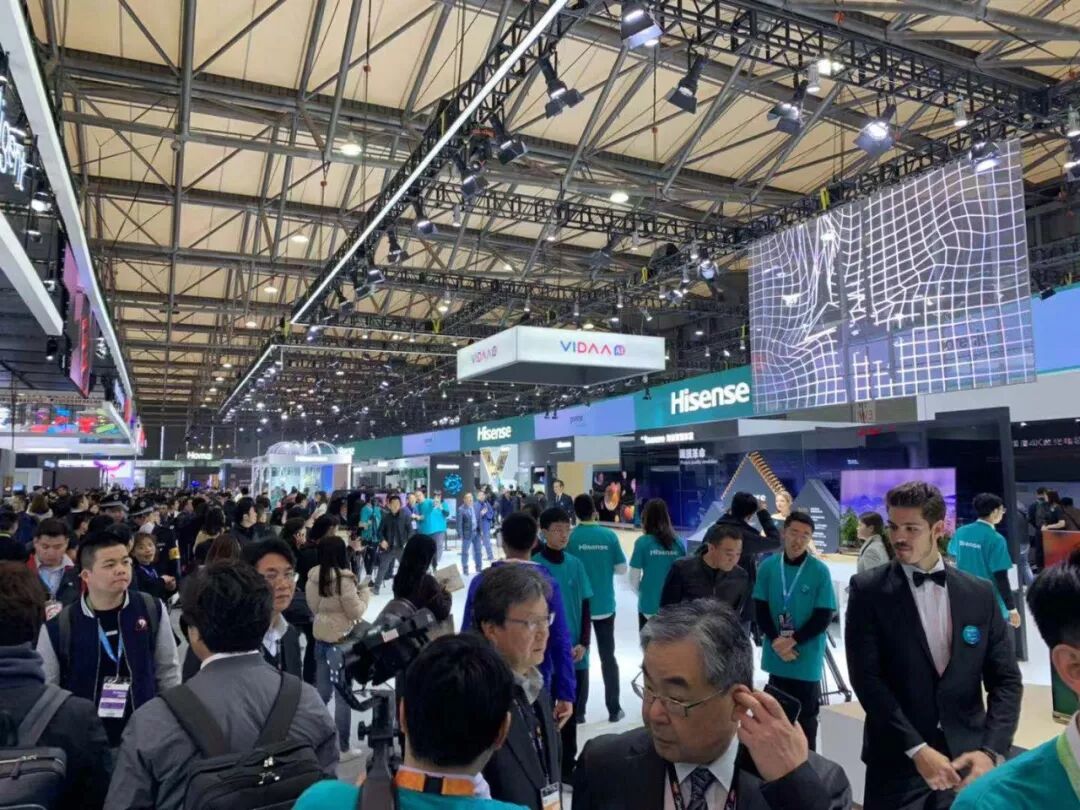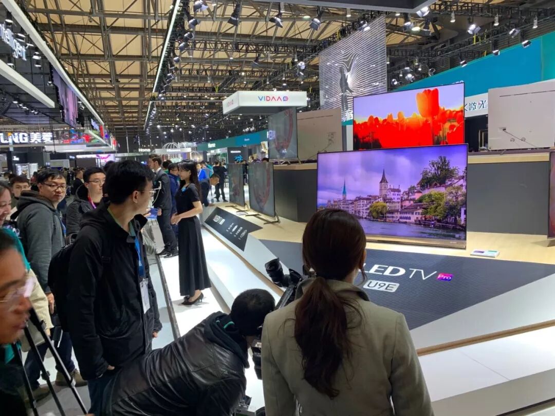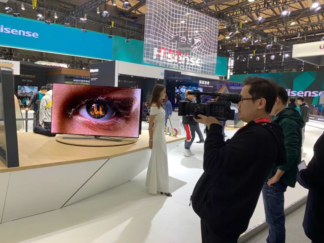 14日上午一開館,海信OLED電視展臺前就擠滿了前來一睹真容的媒體記者、客戶和友商。