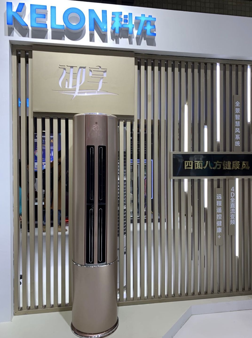 此次AWE,科龍展出了御享系列空調產品,該產品運用了4D全直流控制系統,可以做到“20秒涼爽,40秒暖房”的高效冷暖 。