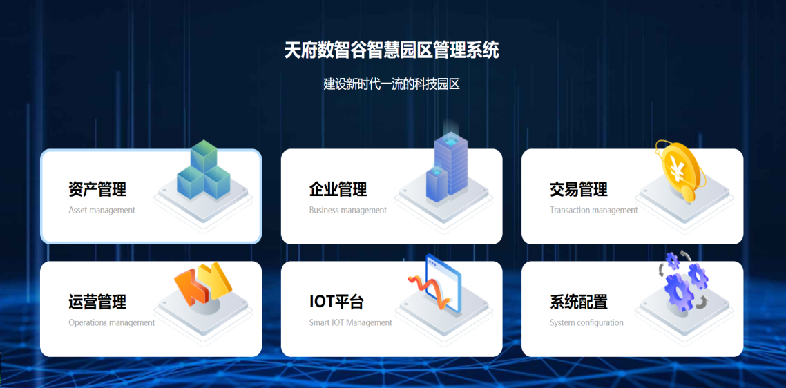 管理系統通過資產管理、企業管理、交易管理、運營管理、招商管理、物聯網IOT六大平臺打造,構建了32個模塊、54個功能點,形成了園區信息集中化管理,為入駐企業提供了更加便捷的智能服務,讓報修維修、入園邀請、會議室預約等運營服務更加便利,入駐企業足不出戶就能夠得到問題的反饋。天府數智谷公司為園區服務按下“快進鍵”,跑出“加速度”。