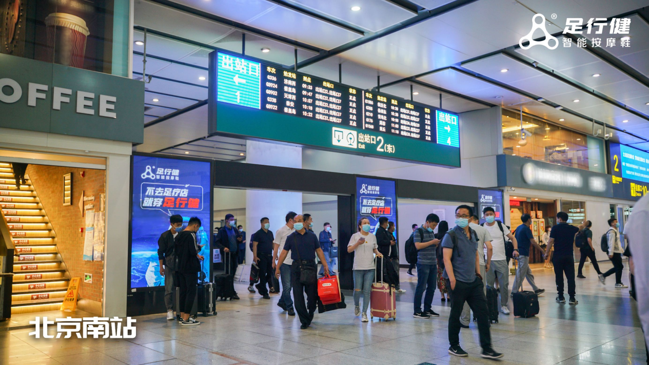 在品牌林立的機場和高鐵站候車大廳、檢票口等黃金高客流量區域都能發現足行健智能按摩鞋大幅廣告畫面刊登的身影,信息覆蓋全國多個重點城市交通樞紐站點,搶占品牌傳播高地,實現全方位、多角度、高頻率的品牌覆蓋推廣,大幅提升足行健品牌的曝光量與知名度,未來,足行健將陪伴全國各地的旅客健康出行!