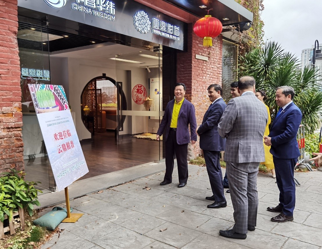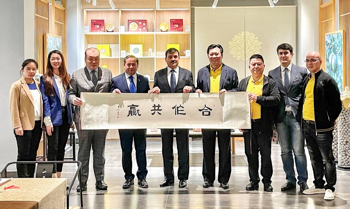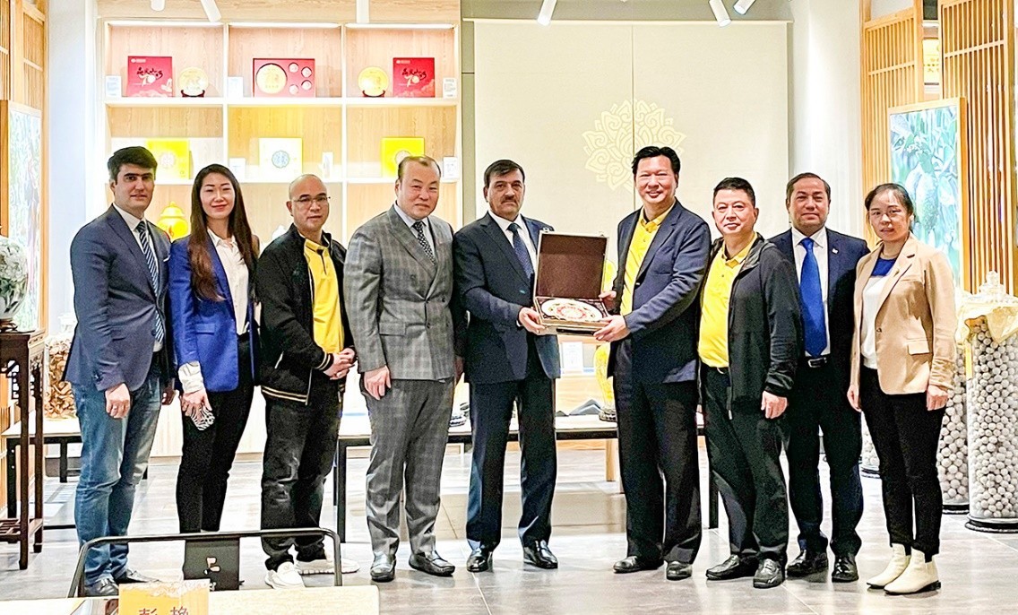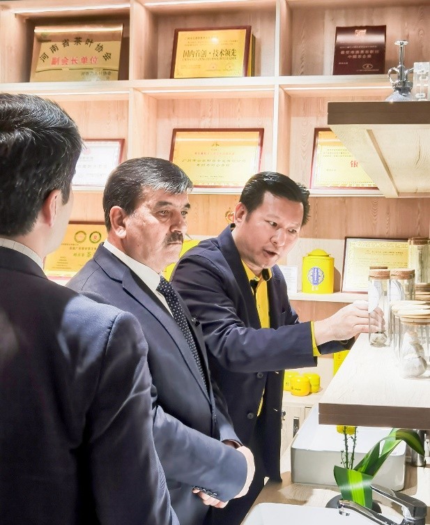 當日,正值塔吉克斯坦傳統新年,邢鳳亮陪同大使一行來到廣州市云鼎柑普茶業有限公司參觀,受到云鼎柑普公司的熱情接待。