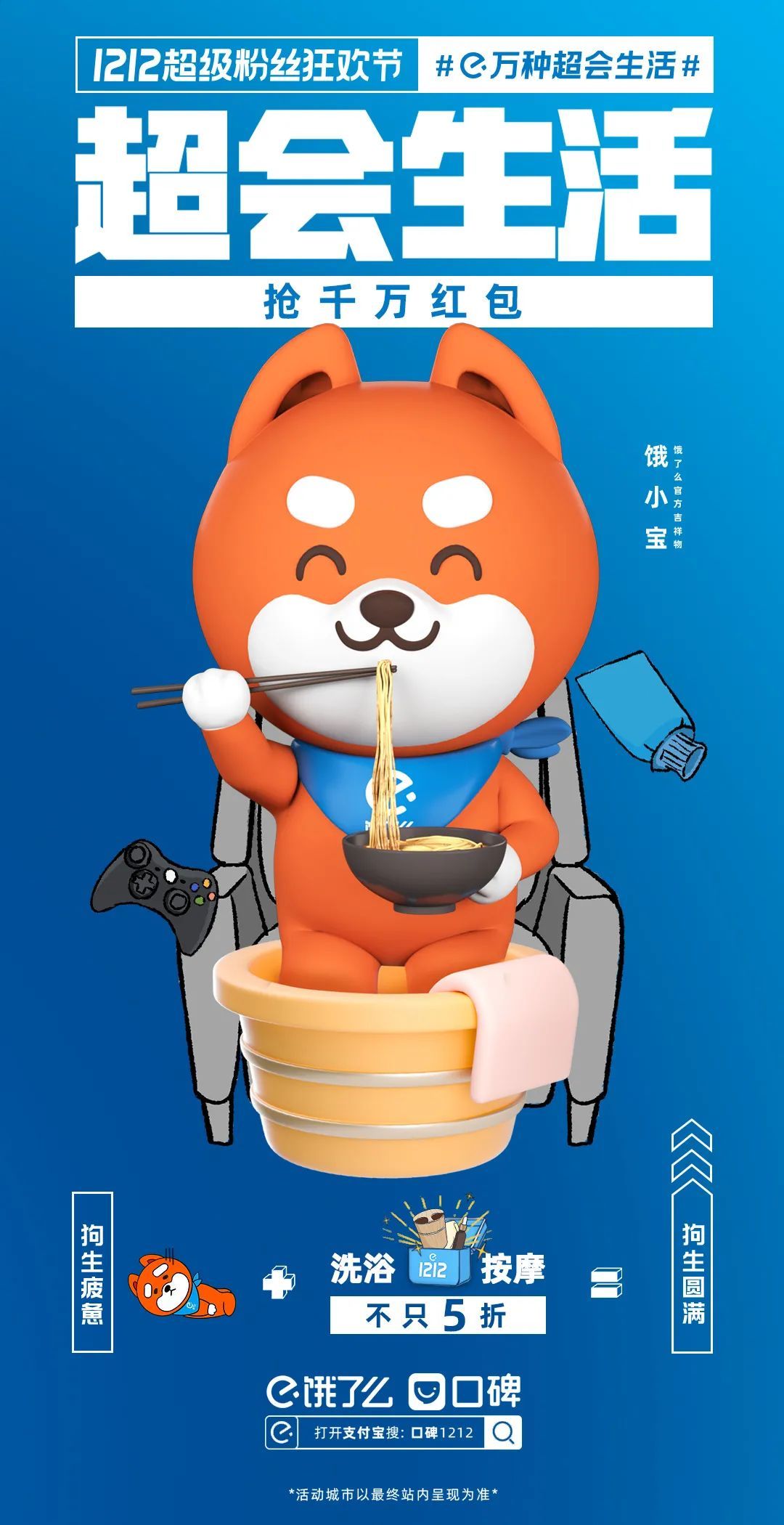 每一種人設背后,都是一種消費場景,比如“孤獨單身狗”人設背后,是餐飲美食主類消費場景;“摸魚打工人”背后代表的是活力生鮮消費場景;餓小寶則代表洗浴按摩。通過不同人設傳達餓了么平臺能夠滿足萬人有萬種場景消費的需求。