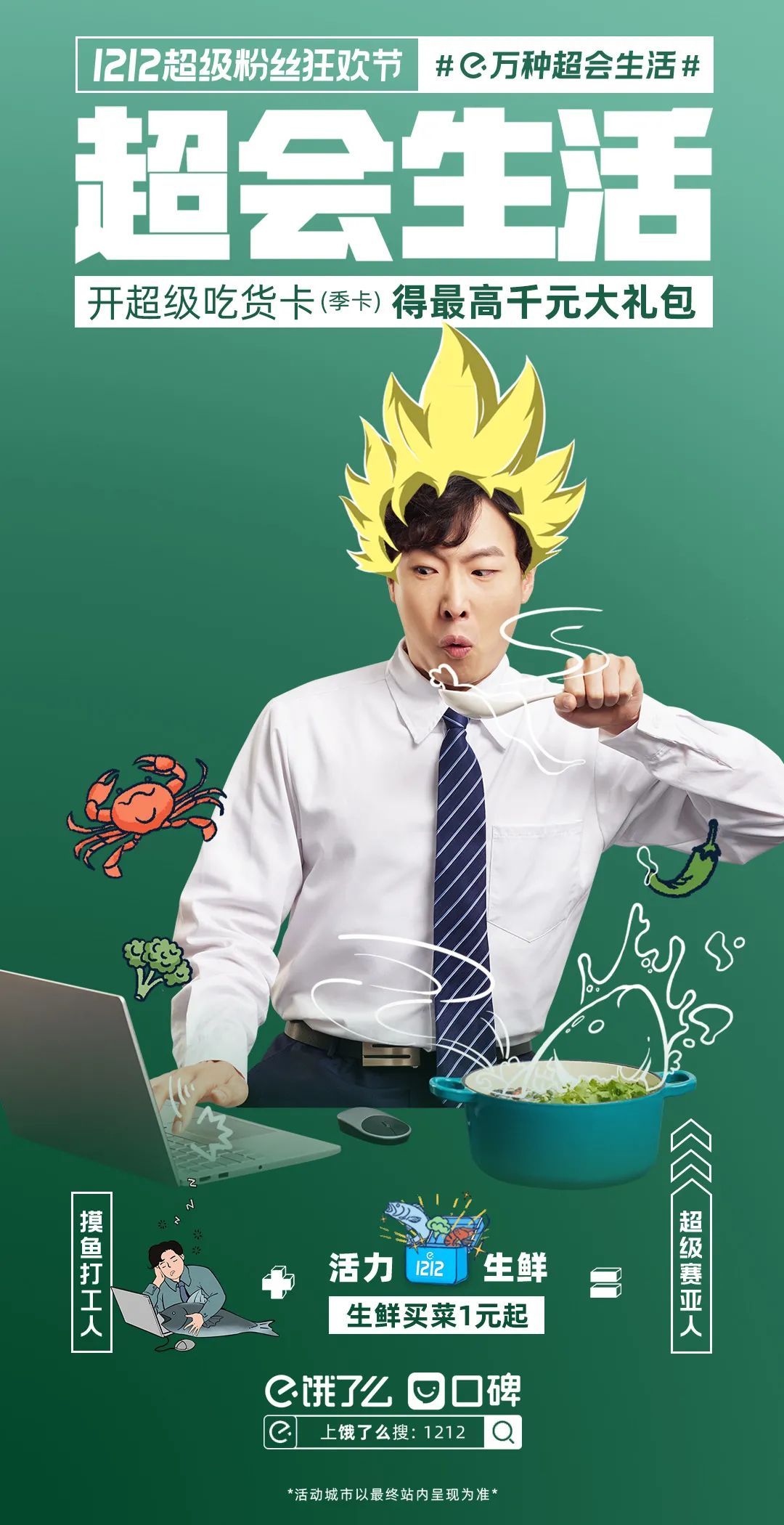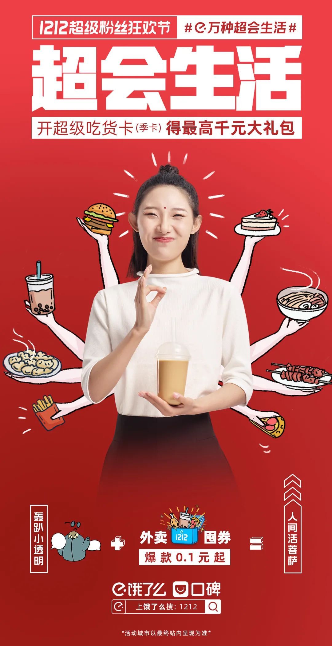 在一眾電商平臺競相角逐下,餓了么開啟的1212超級粉絲狂歡節也拉開帷幕。在持續12天的活動里,餓了么和他的超級粉絲們,以“超會生活”為主題關鍵詞,上演了一場“公式體”的派對,給萬千用戶帶來了一場“e萬種超會生活”show。