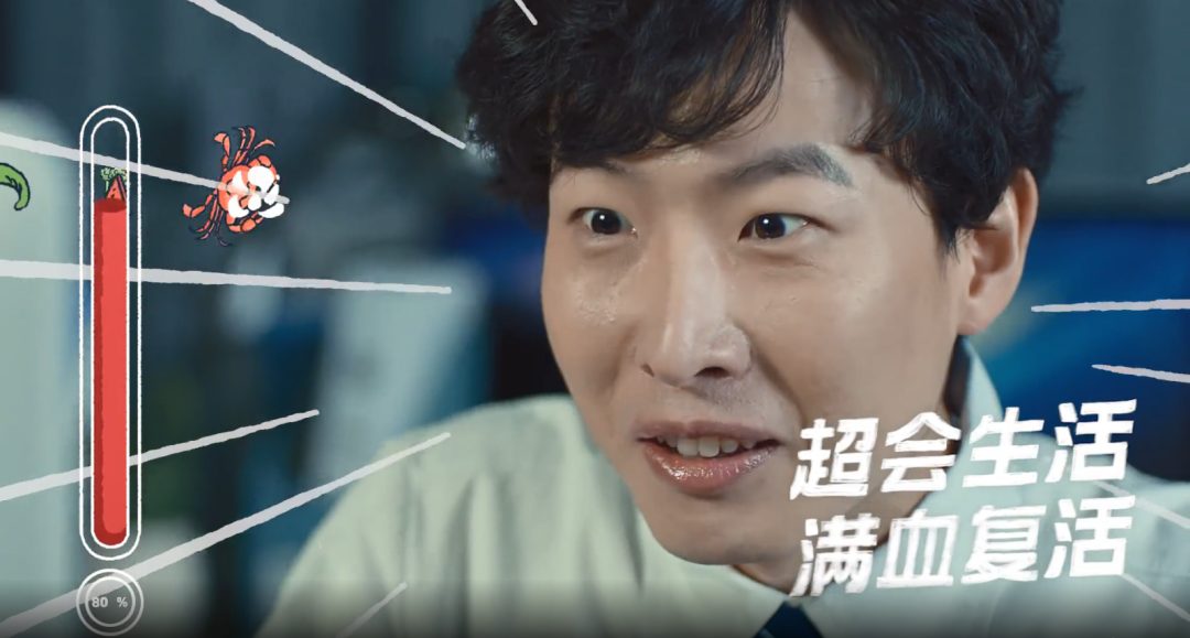 視頻呈現“超會生活、超會social”“超會生活,滿血復活”“超會生活、玩轉生活”的3個典型精彩情節,讓用戶在娛樂式生活體驗中,輕松get“超會生活”的消費技能,而且潛意識增強了對餓了么的品牌認知。