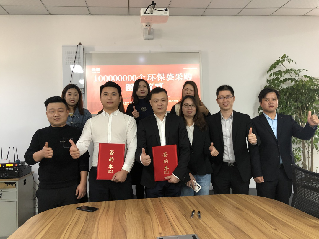 2020年10月23號,拜迪戈雷新材料有限公司與杭州眺望者物聯科技在云袋總部進行了戰略合作簽約儀式,響應國家“禁塑令”號召,雙方就“云袋”達成戰略合作,根據協議,雙方將遵循“互惠互利,平等誠信”原則,建立長期、戰略性的業務合作關系,強強聯手,促進業務共同發展,進一步提升雙方企業價值及社會形象,為環保中國做出更大努力。
