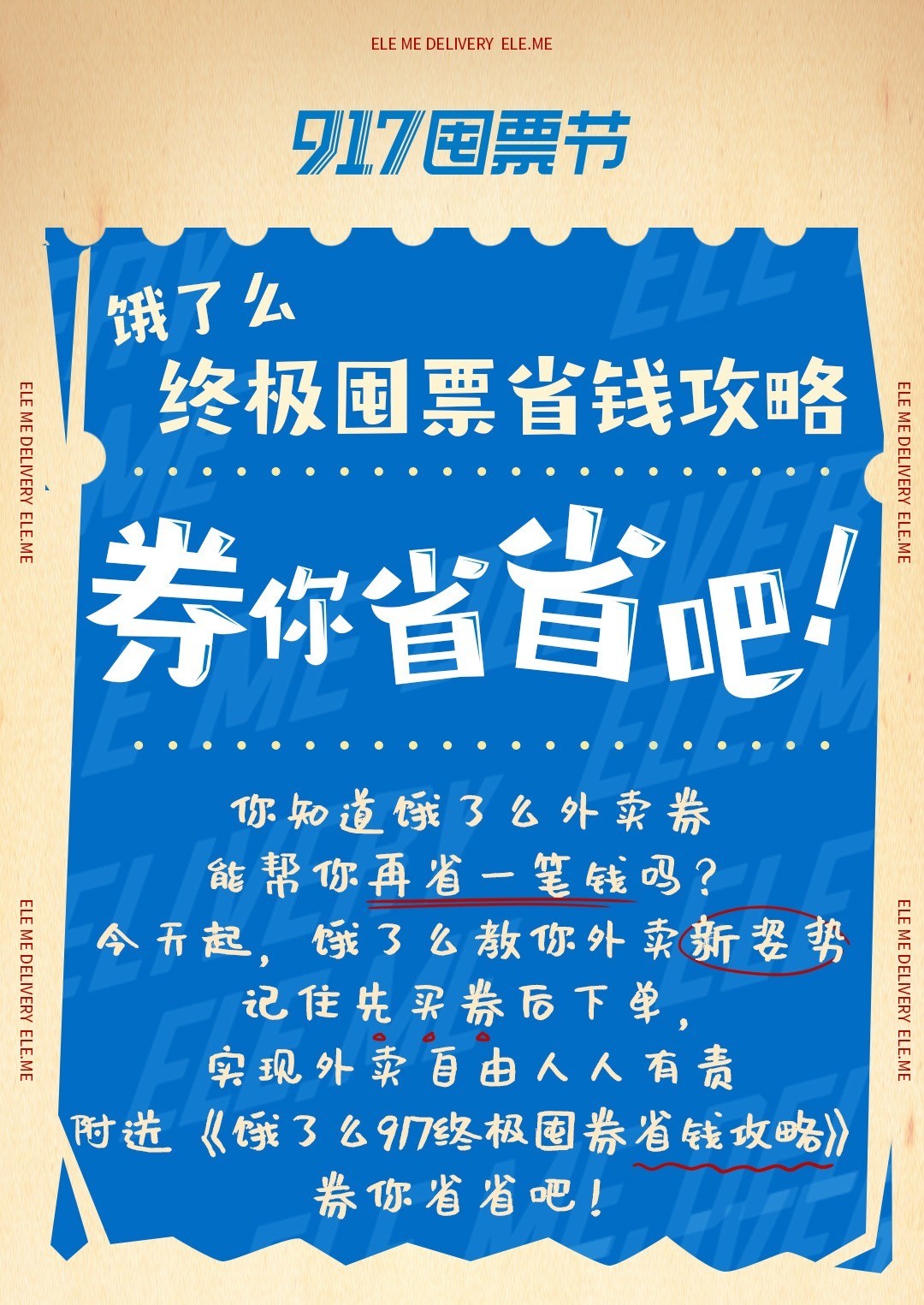 答案當然就在“餓了么917囤票節”了,要想省錢,一定要先囤票。從9月10日開始