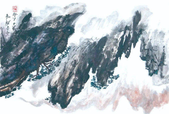 《雙棲》是一幅充滿溫情的寫意畫,一對體態(tài)玲瓏的山雀兒歇息在一塊山石上。清新的空氣,清麗的自然,讓雙棲的鳥兒有一種留戀感,有一種踏實感,有一種自豪感。我不知道鳥兒在企望什么,是畫家所賦予的一種思想嗎?是清風拂竹的聲響讓它們感受出一種美妙的音樂自山間流瀉?還是一縷陽光穿過稀疏的竹葉碰撞出的聲響讓它們感受出不盡的溫暖?應該說生活在這樣的一種環(huán)境里,是鳥們的福祉,它們已經(jīng)習慣了這種清新的環(huán)境,沒有外界干擾,沒有噪雜的紛擾,有的只是安定與和諧。這是一首贊美詩,這是一闋清新雋永的小令,意境優(yōu)美,讓觀者如品茶,如嘗酒,每每都有醉人的感覺。