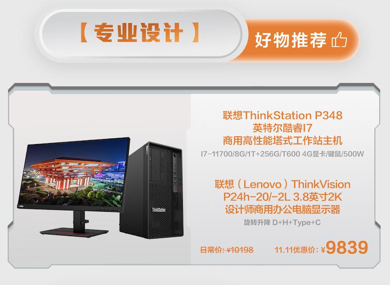 對于需要模型渲染、運行大型軟件和復雜計算的專業設計領域企業用戶來說,聯想推出 ThinkStation P348 商用高性能塔式工作站和 ThinkVision P24h 設計師商用顯示器組合套裝僅需 9839 元,就可滿足影像內容創作、平面及 3D 設計、安防監控、多媒體教學實訓等專業場景需求,讓高性能算力助其釋放創意靈感。
