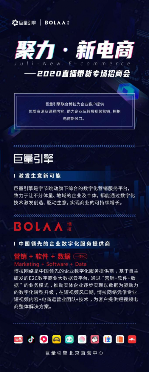 近期,博拉網(wǎng)絡(luò)與字節(jié)跳動深化了合作:針對直播短視頻的二類電商業(yè)務(wù)高速發(fā)展態(tài)勢,面向中小企業(yè)、電商平臺商家提供數(shù)字化服務(wù)。字節(jié)跳動旗下的巨量引擎為客戶提供平臺流量全流程服務(wù),博拉網(wǎng)絡(luò)利用豐富的短視頻內(nèi)容制作和電商運營經(jīng)驗,提供直播短視頻服務(wù)產(chǎn)品。強(qiáng)強(qiáng)牽手,共同解決中小企業(yè)在直播電商中的痛點、難點。