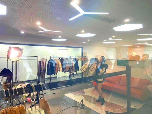 主播正在5G視頻&電商產(chǎn)業(yè)園進(jìn)行秋冬服飾直播銷售