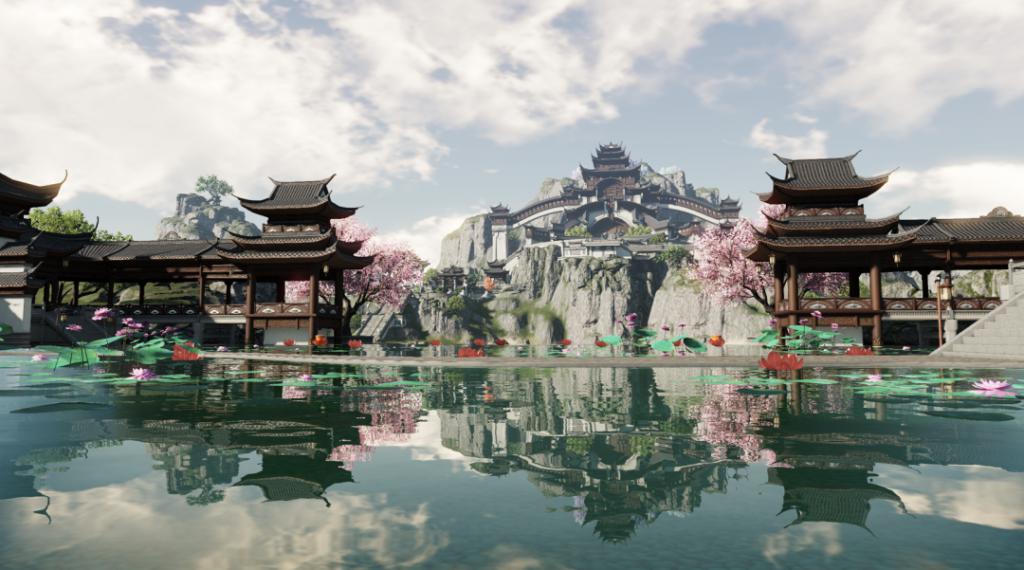 更進一步,天涯明月刀手游還在游戲視距做出了提升——比同類型游戲多出了 30%,從而讓游戲畫面視野更為遼闊,也能容納下更多的角色與物體。