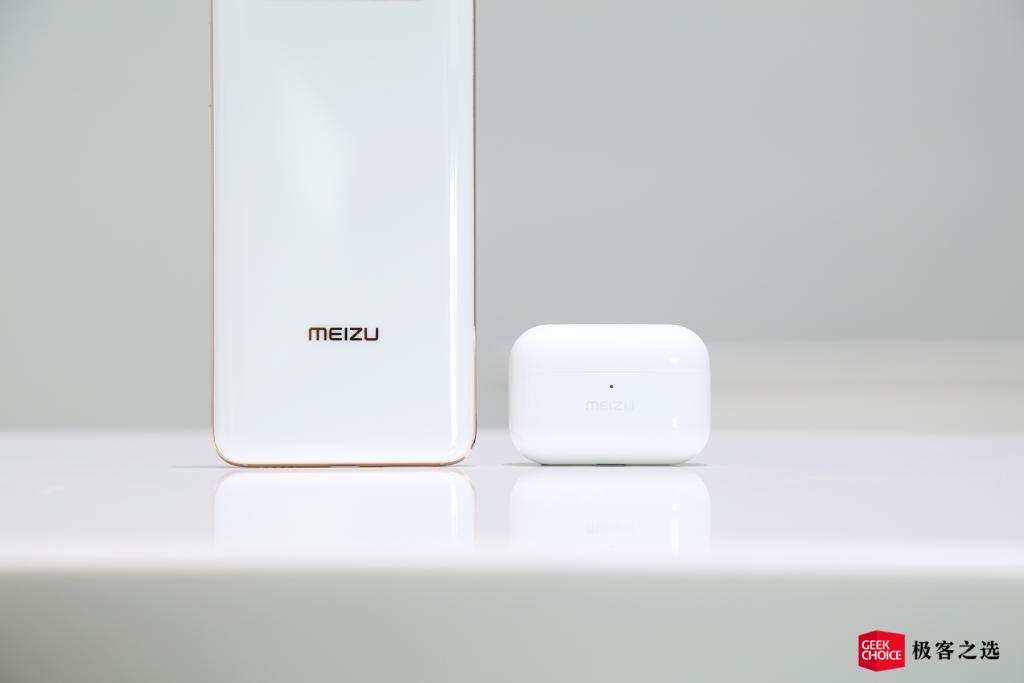充電艙正反面元素布局沒有太多可說的地方,正面 MEIZU logo 上方是狀態指示燈,背面亮面連接區域下方是一枚圓圓的物理重置按鍵。上手之后,它的充電艙手感非常細膩,不過這種表面處理比較容易出現劃痕,AirPods 用戶應該深有體會。