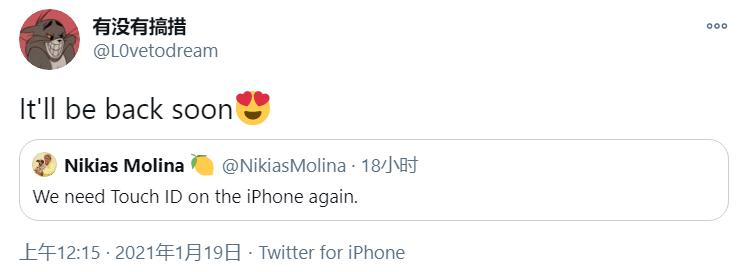 不過那個(gè)熟悉的它可能要回來救我們了—— Touch ID 很可能會(huì)在下一代 iPhone 上回歸!在蘋果產(chǎn)品方面可靠的爆料者 @L0vetodream 今天也在推特上表示,Touch ID 很快就會(huì)回來。