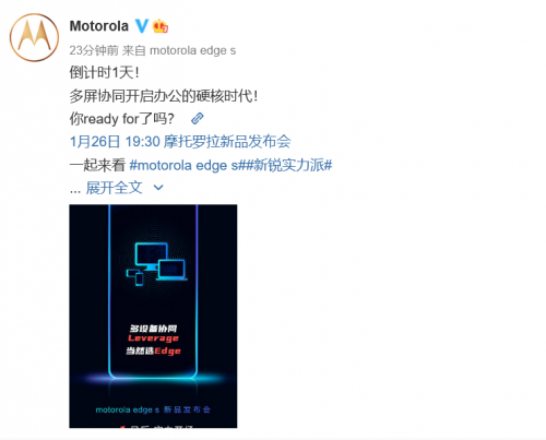 今天,motorola官方微博再次放出猛料,新機將支持多設備協同,從海報來看,用戶可以通過手機連接顯示器、筆記本電腦等設備,實現Leverage效果,達到事半功倍的效果。加之motorola邀請了丁輝作為新機的首席體驗官,不難看出,多設備協同這一功能,主要還是針對新銳職場人群設計。當然,這樣的功能對于商務人群而言,無疑幫助巨大。