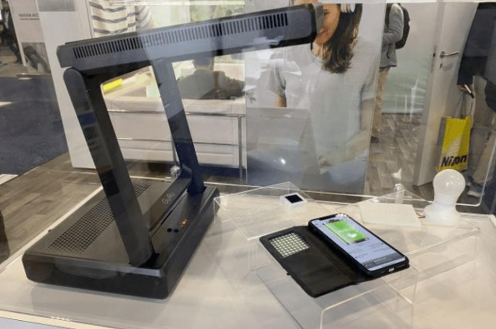 相較于兩家老牌企業,美國另一家成立于 2017 年的年輕創企 GuRu 則大膽使用了毫米波技術,在 2020 年的 CES 展會上,他們推出了一款隔空充電設備,外形酷似 " 臺燈 ",將手機放在燈下,就可以進行隔空充電。