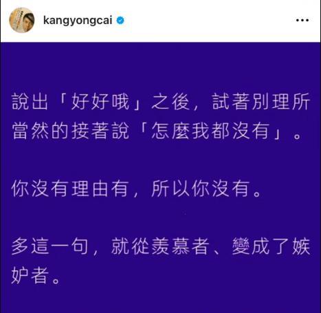 蔡康永發表了一段話,總是很拗口,但疑似不言而喻,尤其在大小S風波期間,很難不讓人對號入座。