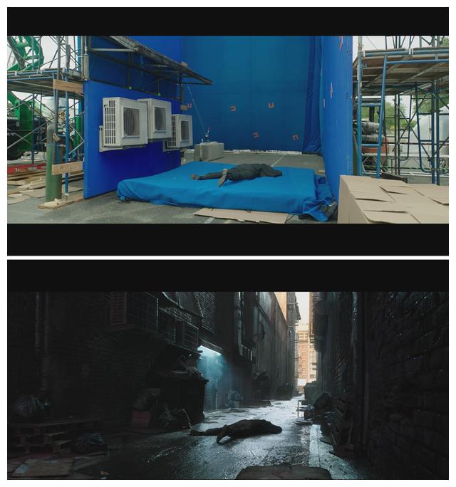 而且這個鏡頭是分段拍攝的,最終撞擊地面鏡頭的特效前后對比: