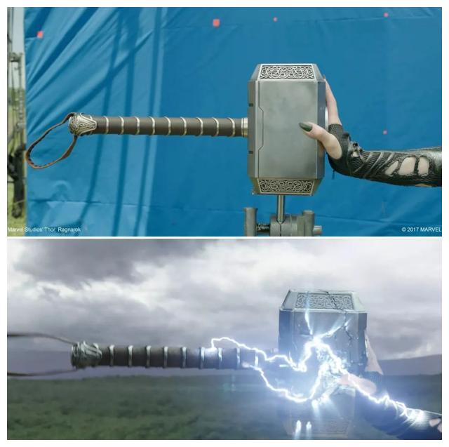 《雷神:諸神黃昏》:電影中海拉不僅可以拿起,甚至捏爆了喵喵錘,實際呢…拍這個場景的時候,演員拿穩它都困難,所以錘子下面還加了個固定裝置…
