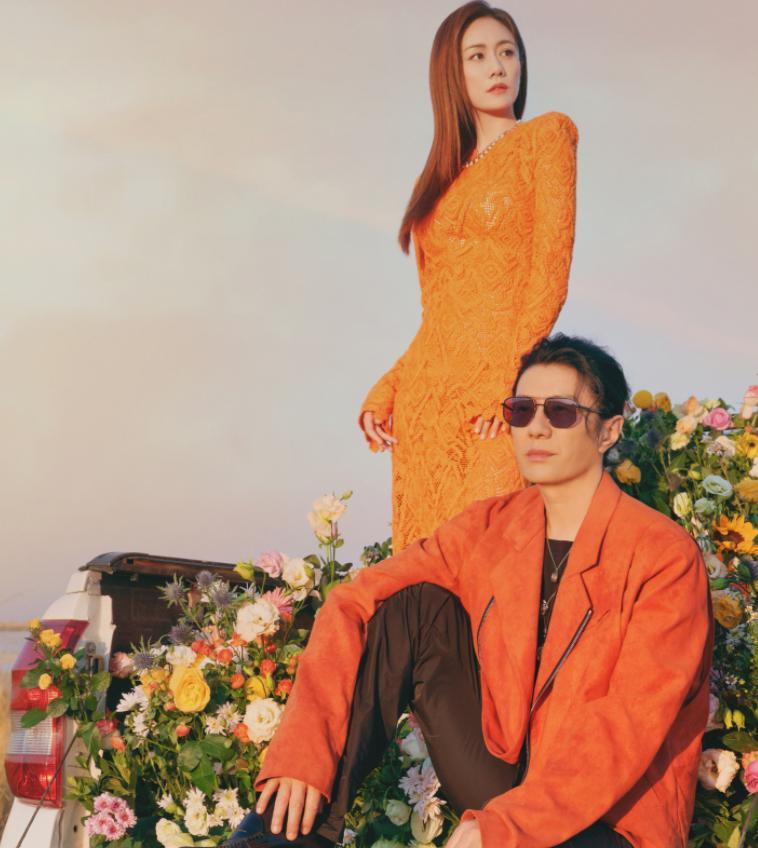 再看鄭鈞夫婦的官宣照,他穿著一件顯眼的橙色外套,劉蕓則是穿著一條橙色蕾絲長裙,夫妻倆穿了情侶色系的衣服,二人坐在車上,配上燦爛的夕陽,畫面看起來相當溫馨。