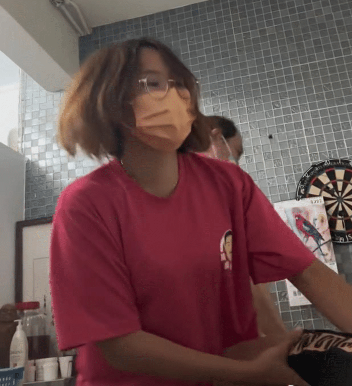 于是一位女士出現在鏡頭前,她拉下了李立群的褲子,按摩師配合按摩。