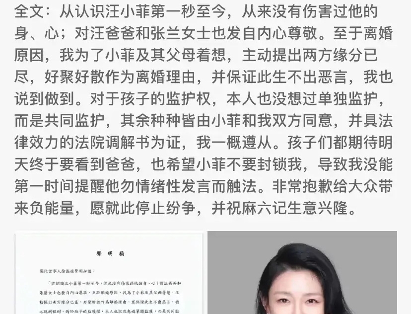 還有一個細節,是這篇聲明函里狠而不露的文字游戲精華所在,“從來沒有傷害過過他的身和心”。很少人會這樣寫,特意寫成這樣,只能有一個意思,她如果沒有,那就是小菲有過,也許是動過手或者是讓她傷心了。