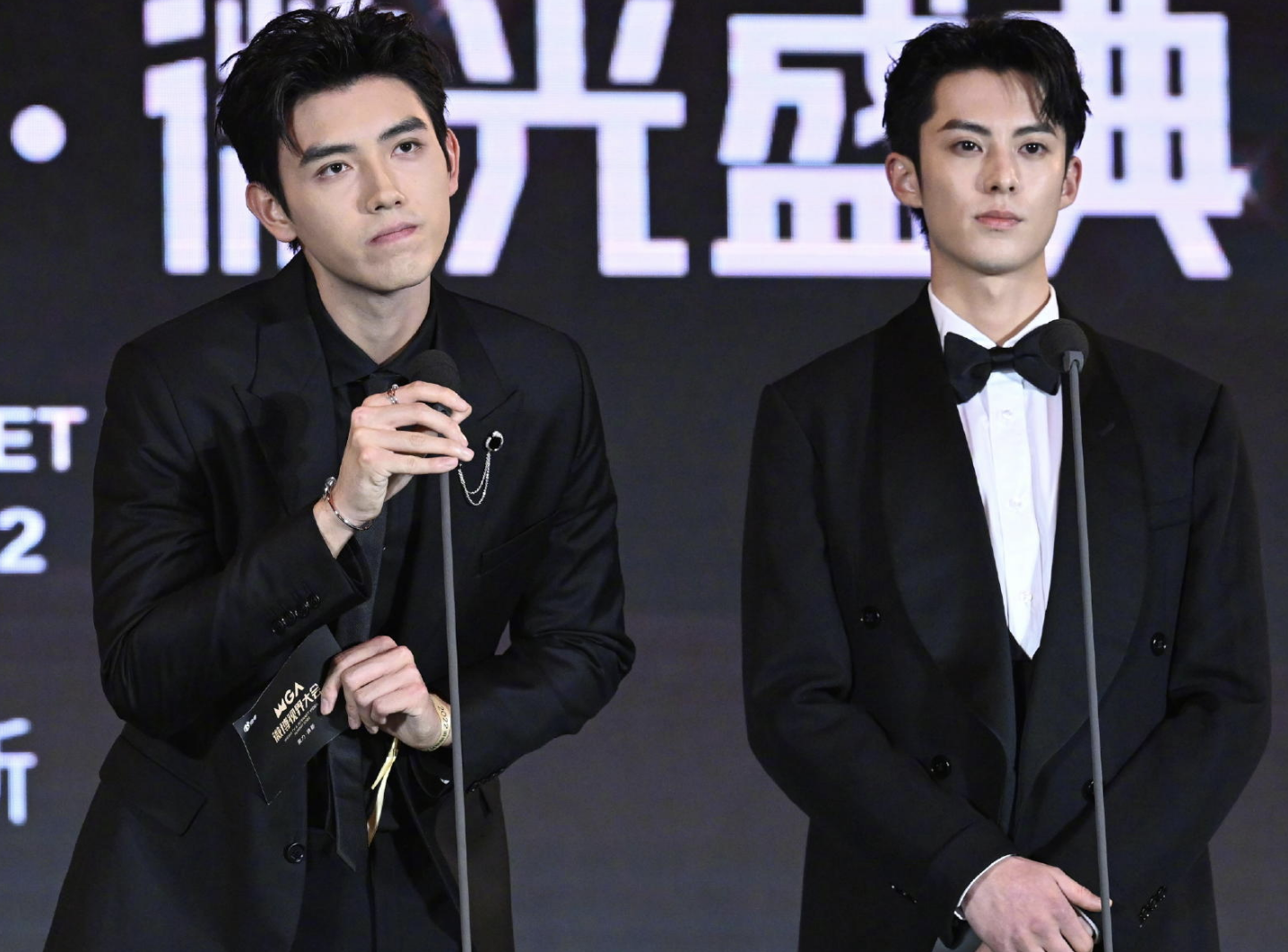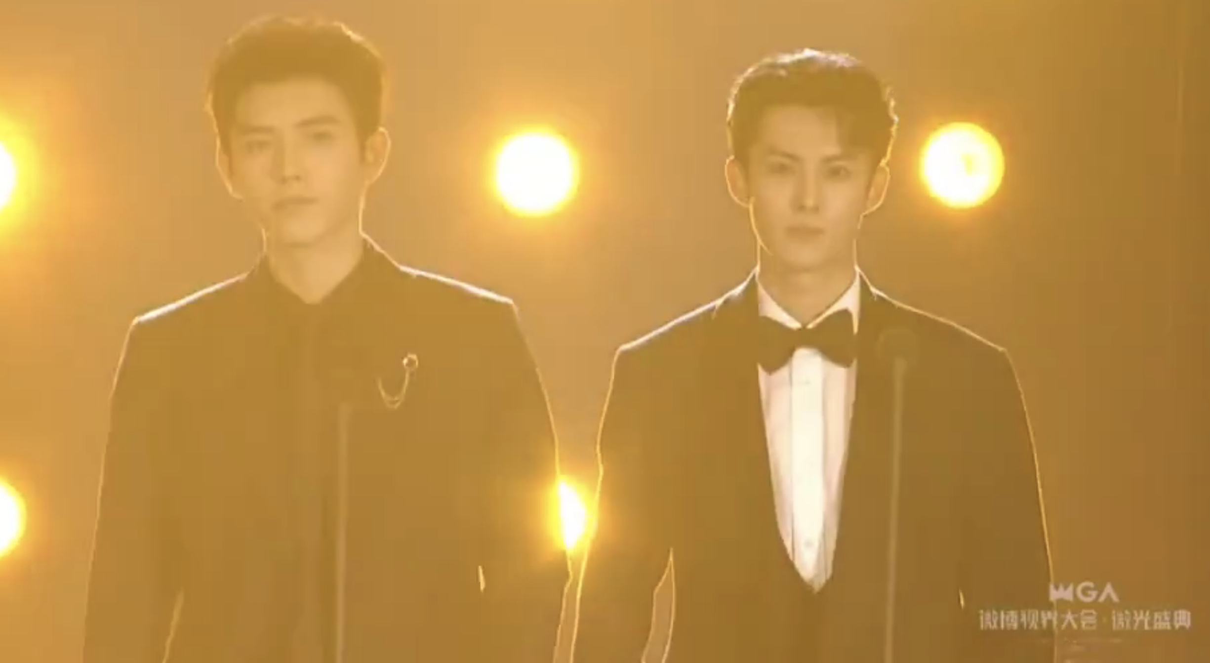 兩人一起從光中走來,西裝革履十分養眼。《蒼蘭訣》和《點燃我溫暖你》持續霸屏,兩個男主角深獲觀眾喜愛。