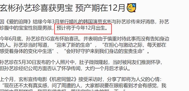 孫藝珍和玄彬因合作《愛的迫降》而因戲生情,本身大眾對于孫藝珍和玄彬就比較看好,之后兩人低調(diào)舉辦婚禮,并且度蜜月之后官宣懷孕消息,既孫藝珍挺孕肚參加朋友婚禮之后,孫藝珍再曝家中孕照。