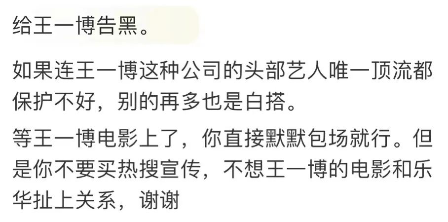 從要求告黑到要求電影包場,每項要求都在為王一博的事業操心。