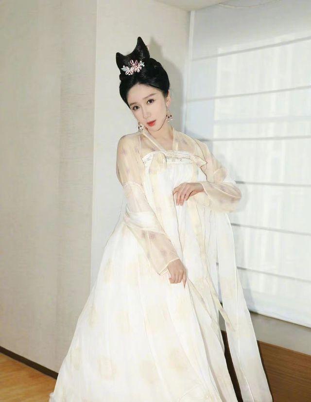 她穿了一身漢服走紅毯,還搭配了傳統(tǒng)發(fā)髻。