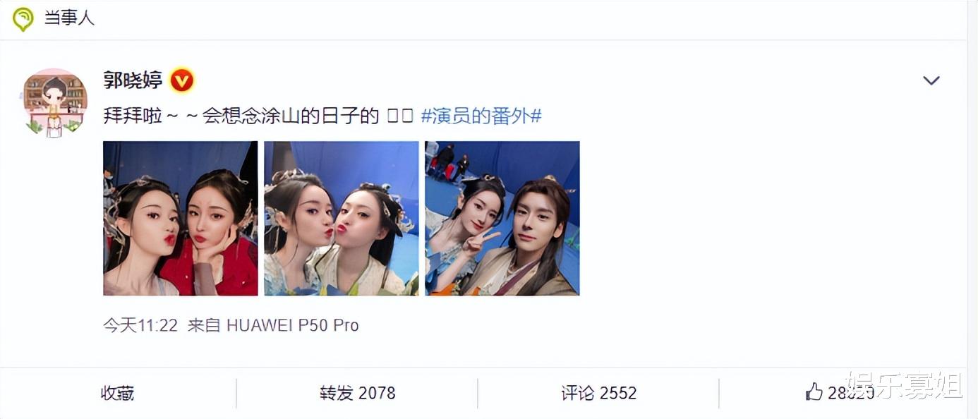 郭曉婷在社交平臺上曬自拍合照告別《狐妖小紅娘月紅篇》,并配文:拜拜啦~~會想念涂山的日子的,照片中郭曉婷曬和楊冪胡連馨片場嘟嘟嘴,這也太乖太養眼了,美女們的狀態好極了,就愛看美女們貼貼!