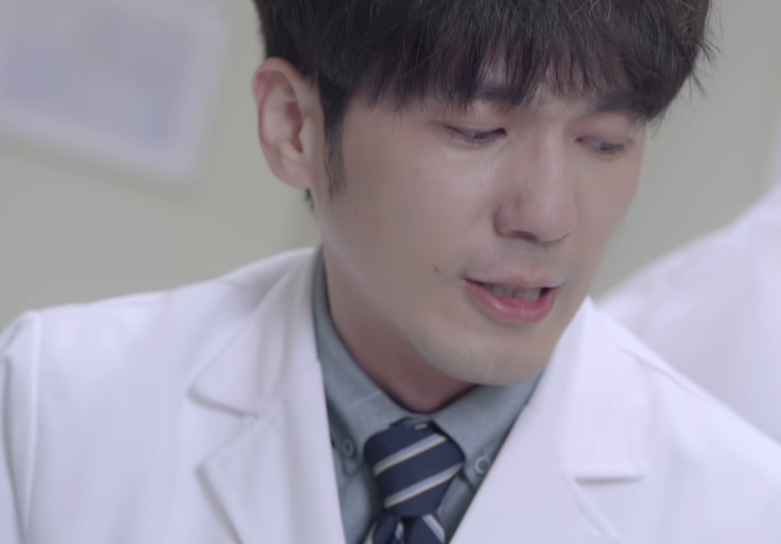 還有一幕是展現(xiàn)高光演技的戲碼,陳教授意外去世,身為主治醫(yī)生的白術(shù)必然難以接受,遺憾、不甘、悲痛這些都應(yīng)該是這位年輕醫(yī)生應(yīng)該表達(dá)的情緒。