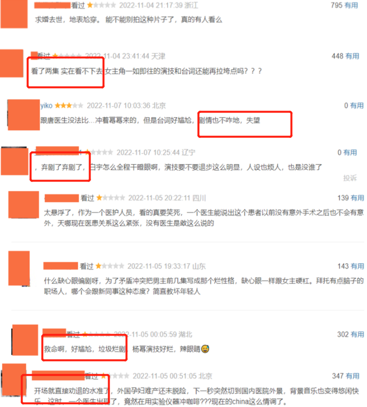 再有就是病患的案例也不夠接地氣,像什么語言學(xué)博士、要給丈夫留后的孕婦都無法引起觀眾的共鳴,當(dāng)一部劇脫離了生活,也難怪會讓人看不下去。