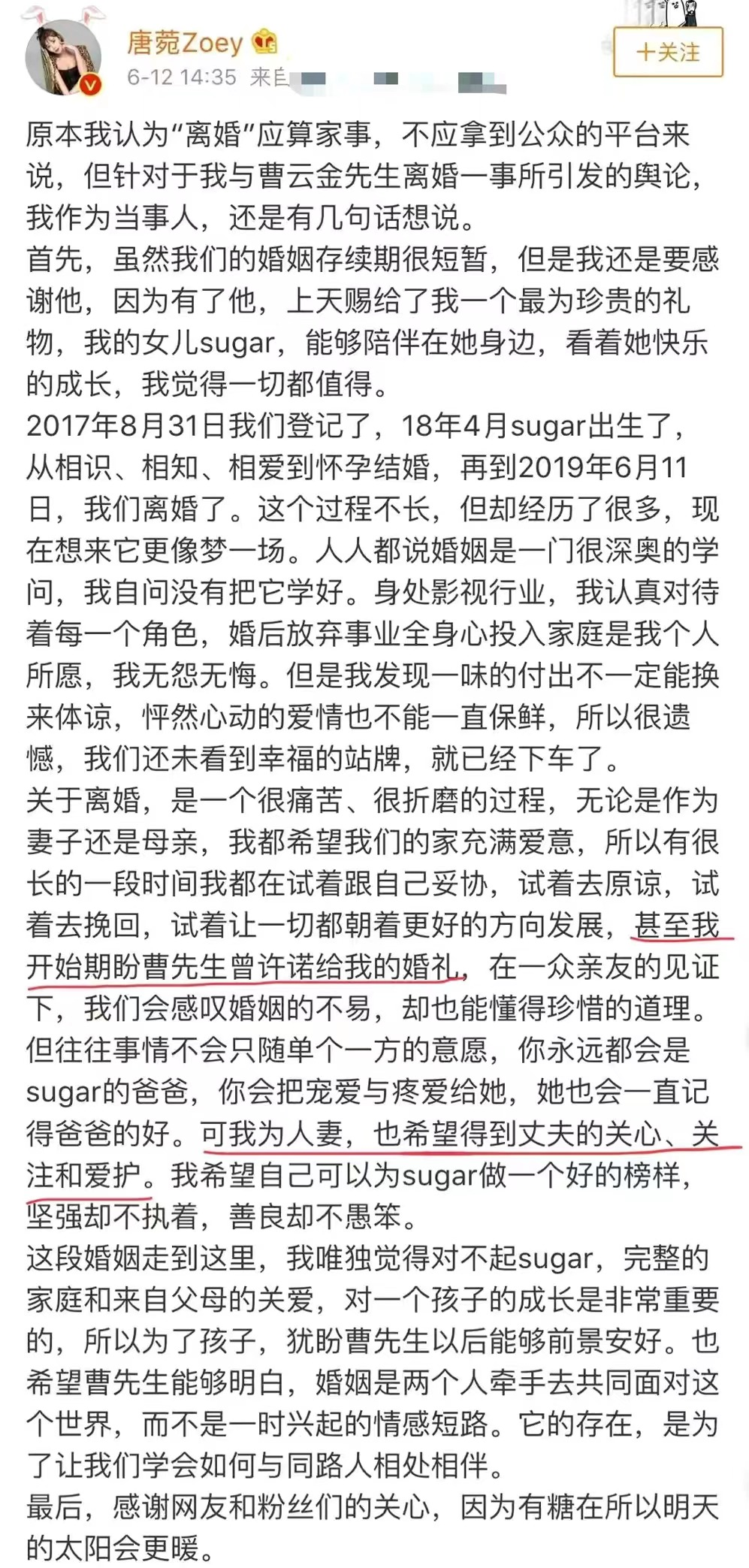 可惜唐婉還在喂奶的時候,唐婉和曹云錦鬧翻了,兩人以性格不合為由宣布離婚。
