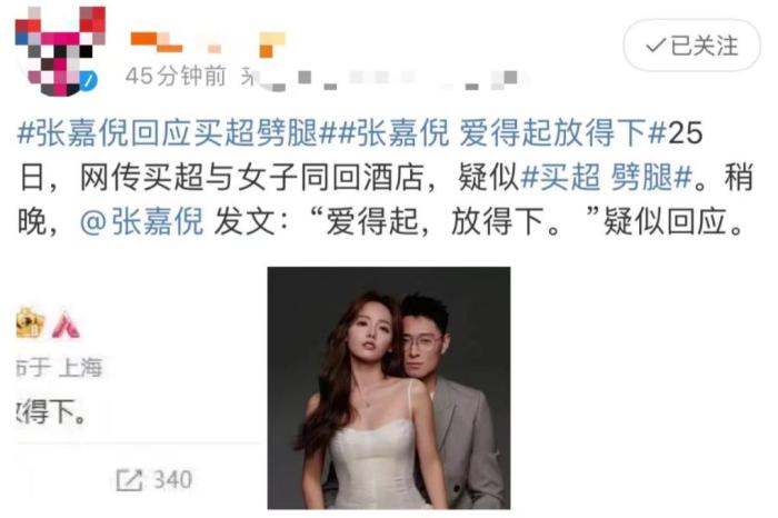 張嘉倪也對于此事做出回應“愛的起,放的下”,即然做出對于婚姻不忠誠的事情,那就沒有必要在維持下去了。