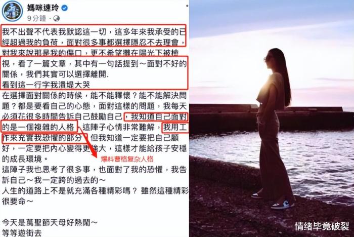 曾為了孩子與家庭,一直隱忍,就算受傷也打碎牙往肚子里咽,每次都是自己舔傷口。直到最后終于想明白,選擇了離婚。可沒想到卻還要承受這么多,自曝經(jīng)常情緒崩潰大哭,只有靠工作來麻痹自己,讓自己充實起來。