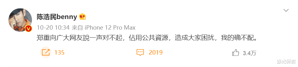 這些網(wǎng)民實在受不了了,大家紛紛批評他的行為,說他不應(yīng)該玩這個鋼。后來,陳浩民只能出去道歉,說:我向大量占用公共資源、給大家?guī)砺闊┑木W(wǎng)民鄭重道歉,我真的不配。