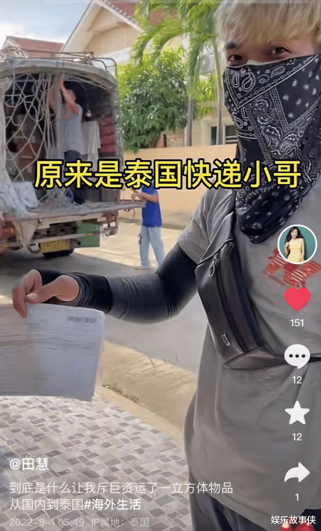 田慧前不久在社交平臺分享了在泰國豪宅的日常,那天正是她從國內運送的1立方快遞到達泰國的時候。