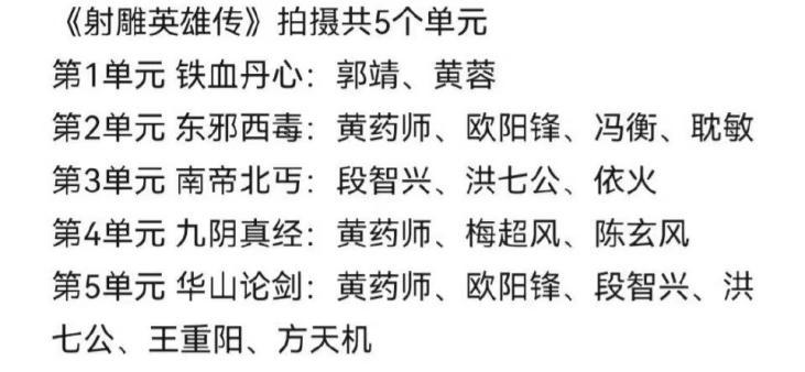 而且翻拍也推出了創(chuàng)新,把劇情劃分成了一個個單元,它們是《東邪西毒》、《南帝北丐》、《華山論劍》、《九陰真經(jīng)》、《鐵血丹心》,每個單元的故事都很完整,共同串聯(lián)成了金庸筆下的武俠世界。