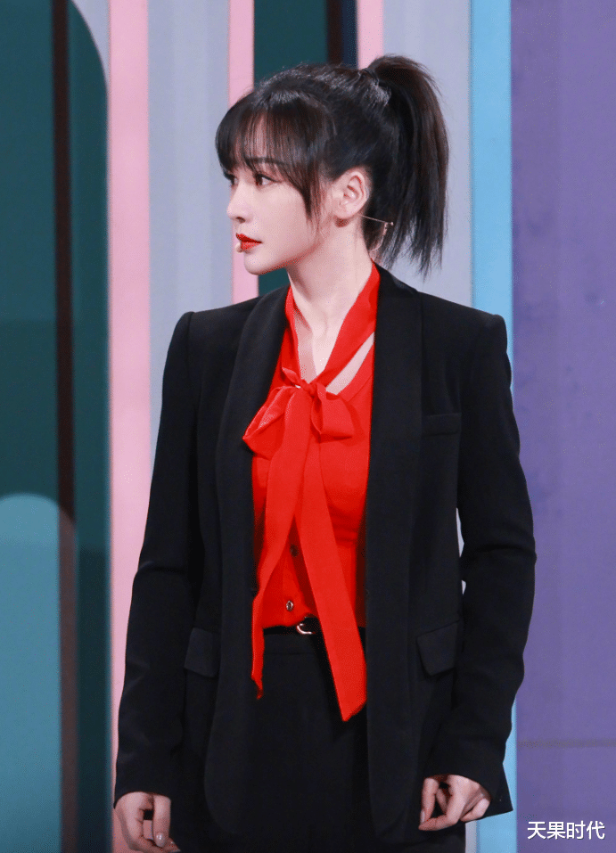 大紅大紫的色彩在視覺上更有沖擊力,能夠給人留下深刻的印象,柳巖選擇的黑色西裝套裝雖然很美很颯但是色彩比較常規(guī),紅色的襯衣內搭打破了整體暗沉單調的搭配,為視覺帶來強烈的記憶力,紅黑色彩搭配更加大氣成熟彰顯女性霸氣的氣場,瞬間變得更颯更強勢,給人一種壓迫感。