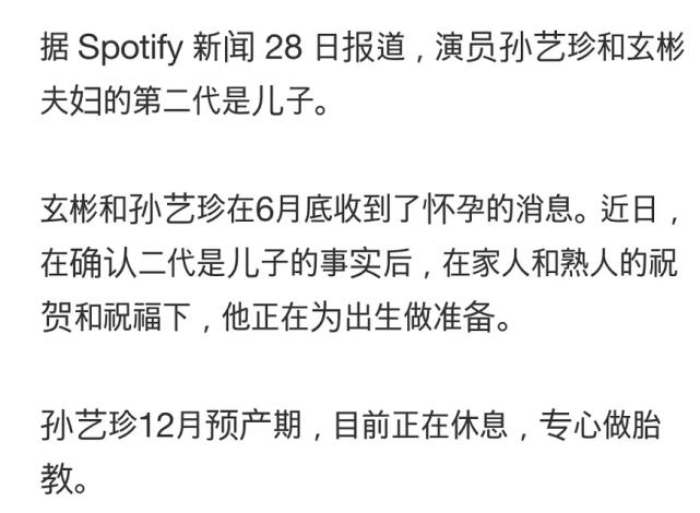 10月28日,據韓媒最新爆料,玄彬與孫藝珍的寶寶性別已經確定,兩人即將迎來可愛的小王子,預產期在12月。
