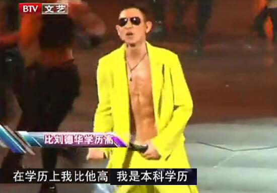 在BTV采訪中,龐龍還補充道:我跟劉德華比最大的優勢在于,我是本科學歷,他是無線藝能班的學生,而且主業還不是唱歌