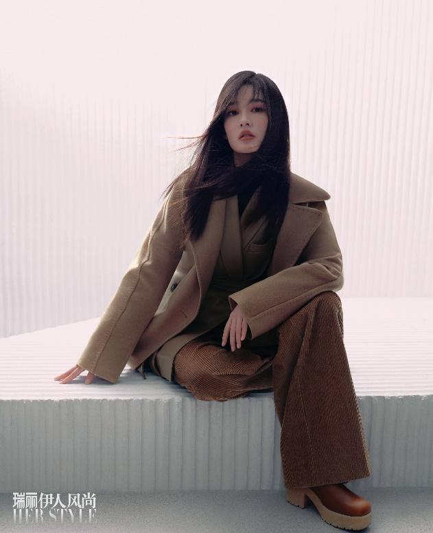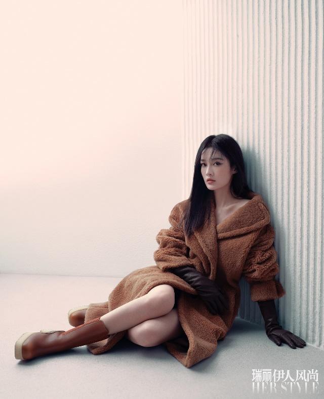 封面中,李沁身穿淺棕色泰迪大衣,靠墻而坐,一綹長發(fā),鎖骨性感線條清晰勾勒,露出一雙輕盈纖細(xì)的雙腿微微交纏,給人一種親切感慵懶隨意的視覺享受。