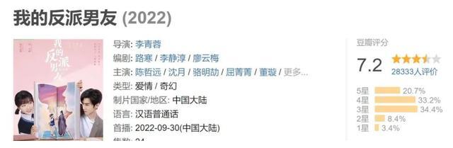 豆瓣2萬8人給出了對于現偶劇來說算不錯的分數——7.2,評3星跟4星的人最多,說明非粉絲刷分,也沒有黑子入侵,是比較客觀中肯的分數了。